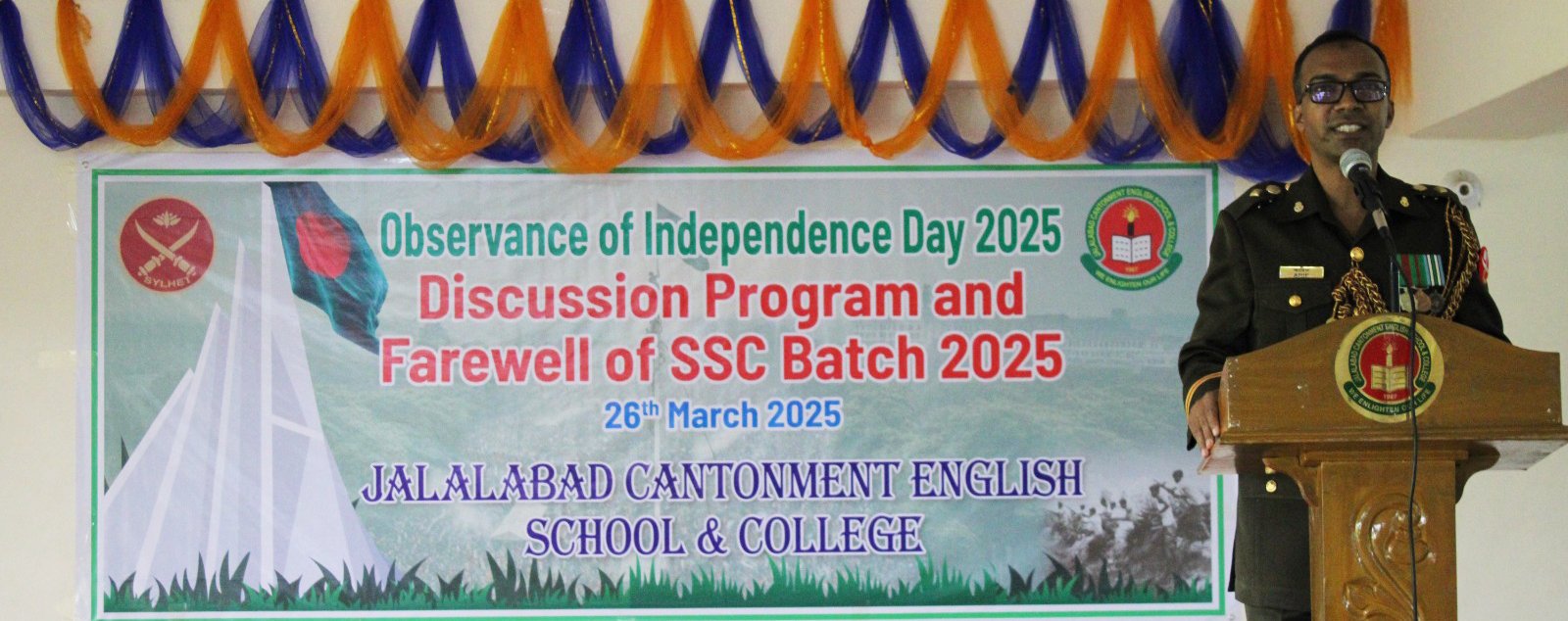 In the name of Allah, the most merciful! At the beginning, I convey my sincerest gratitude to Almighty Allah for allowing us to open the website of Jalalabad Cantonment English School & College (JCESC).The ultimate determination of success of any education institution lies in the accomplishment of mission. At JCESC, our mission is to develop our students as ‘balanced personality’. We define ‘balanced personality’ as a fine mix of good character qualities and knowledge. We firmly believe that a student with good character qualities and knowledge can succeed in life. Such students will surely be invaluable assets of the society. They shall be able to differentiate between ‘truth’ and ‘false’, resist the ‘false’ and establish the ‘truth’ in the society. Thus, our society can be safe and peaceful. But it is not an easy task to transform a student to a ‘balanced personality’ unless every member of the school and the guardians collectively put their sincerest effort. Above all, nothing can be achieved without the approval and help of Almighty Allah. We pray to Allah for His blessing so that we can succeed in our mission. Finally, I take the opportunity to thank all students, their guardians, members of the Governing Body, teachers, staffs and all other involved with this institution. We shall always appreciate the support and suggestions of the guardians for progressive development of this institution. May Allah bless us all.