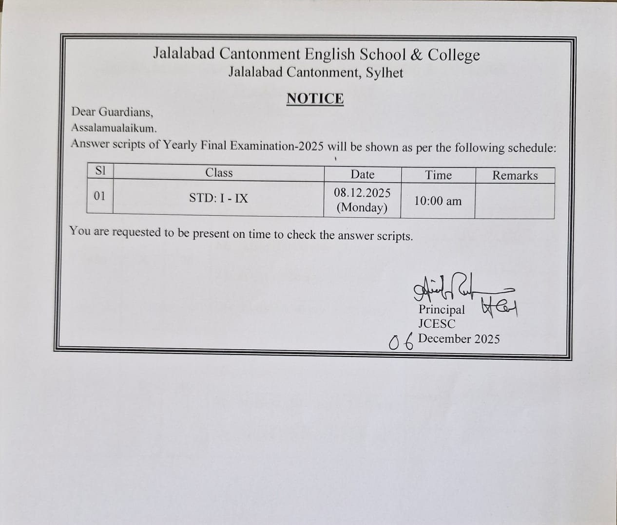 Answer Scripts Showing of Yearly Final Examination-2025 (STD I-IX)