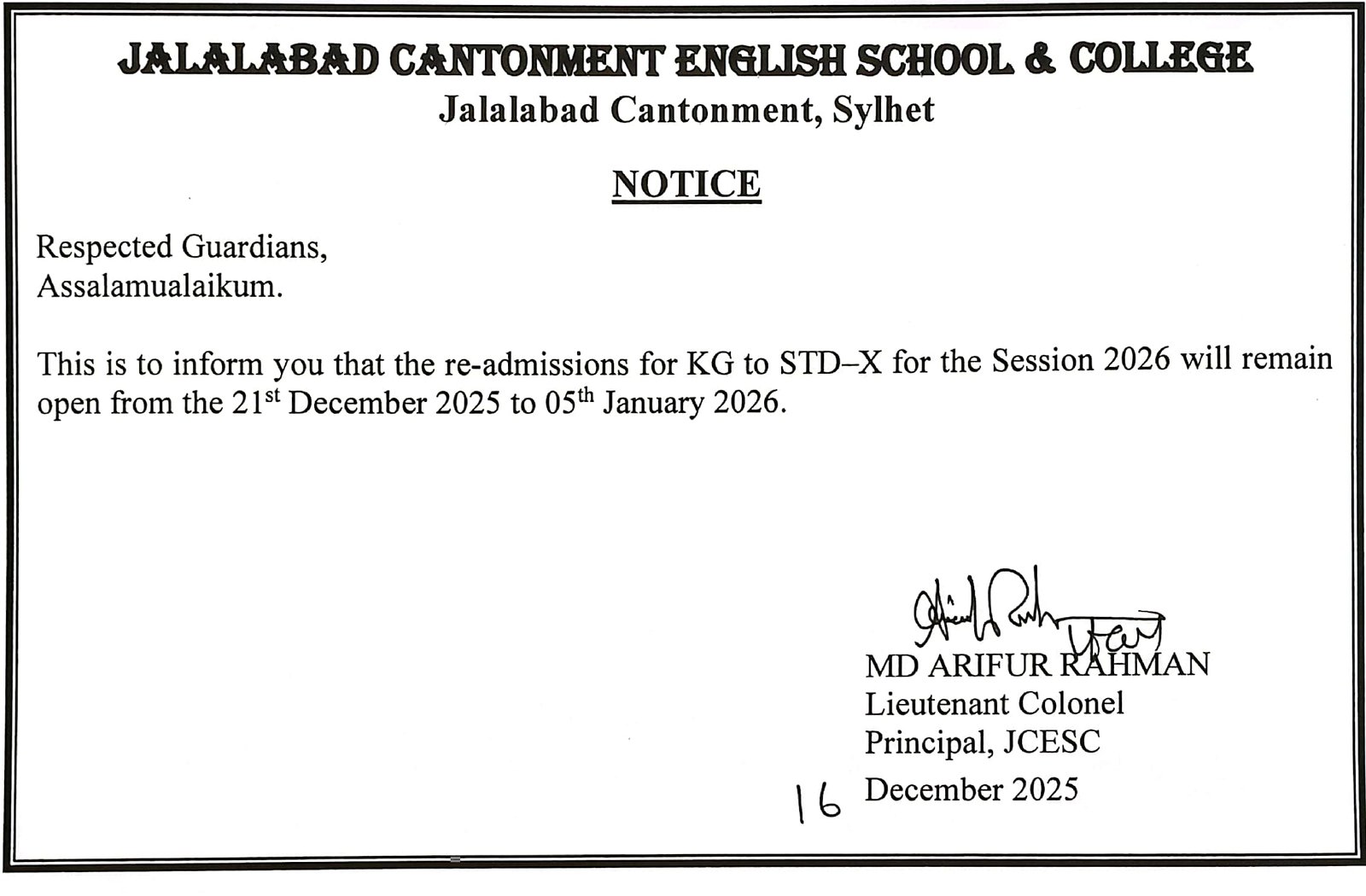 Jalalabad Cantonment English School and College (JCESC)