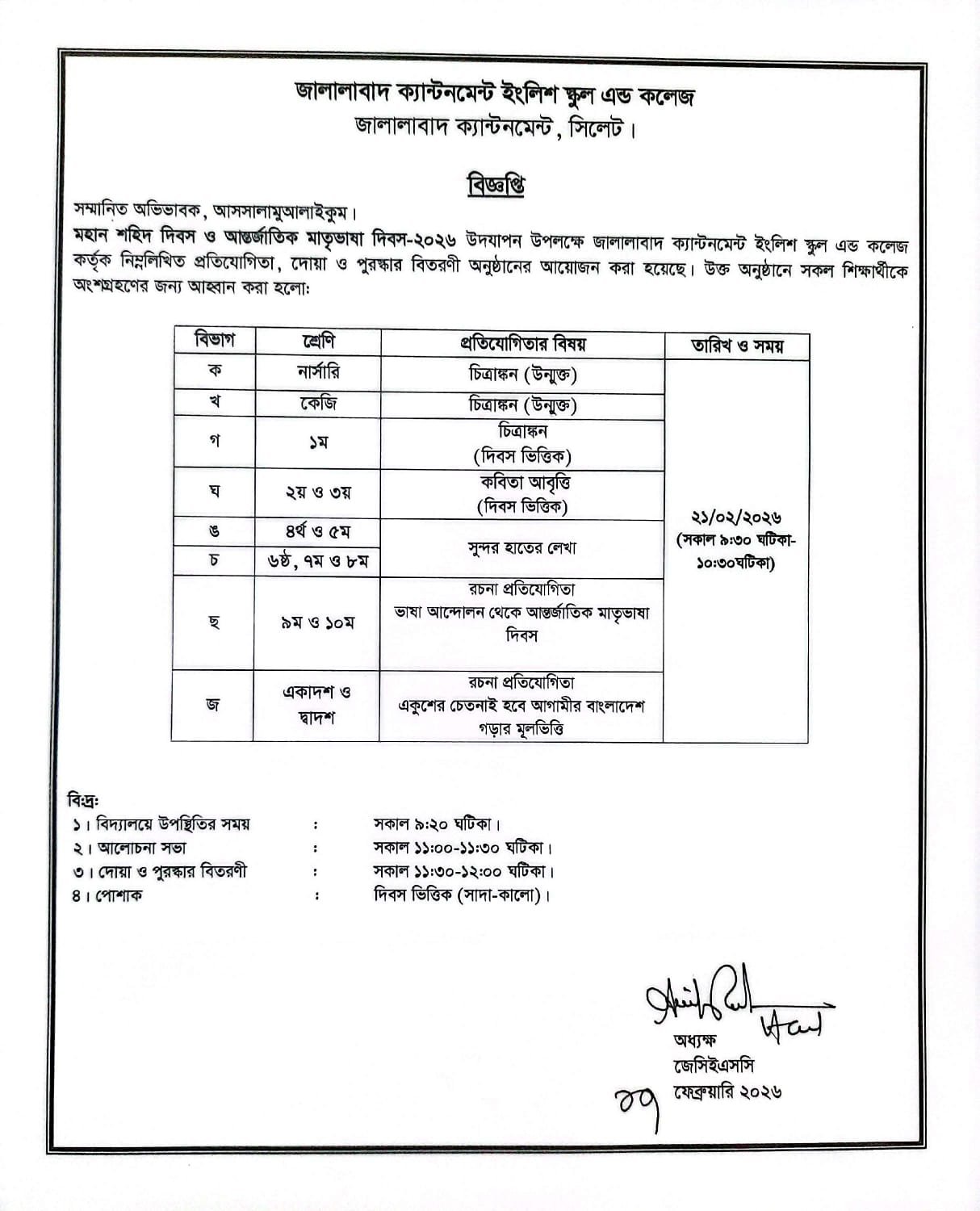 Jalalabad Cantonment English School and College (JCESC)