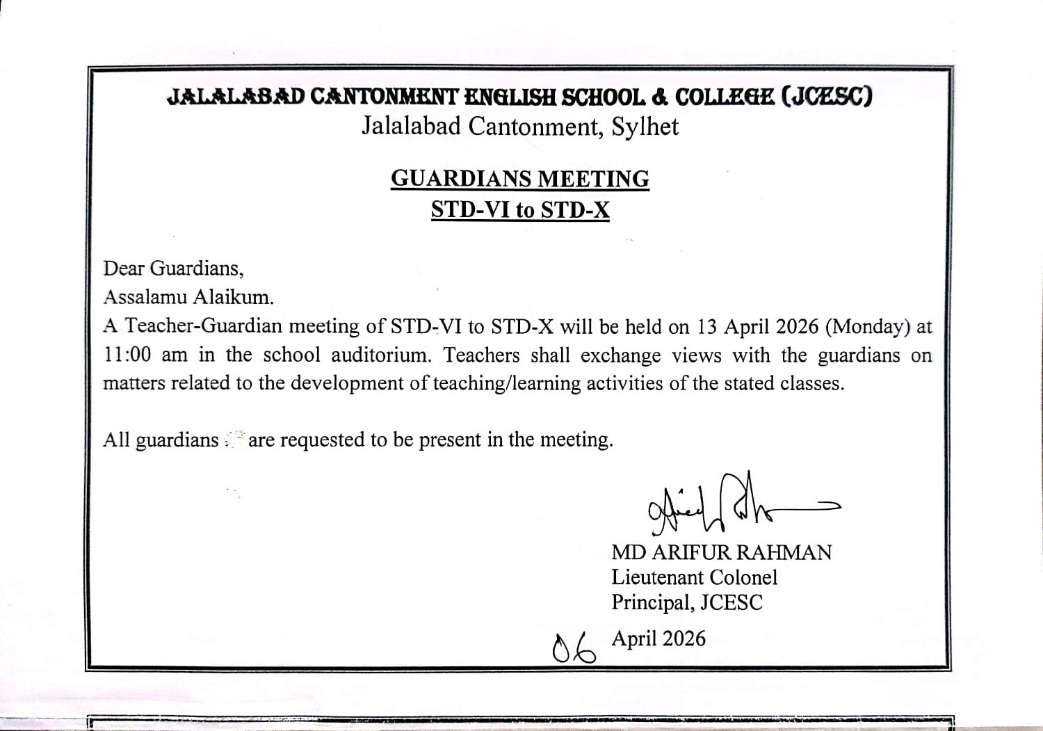 Jalalabad Cantonment English School and College (JCESC)
